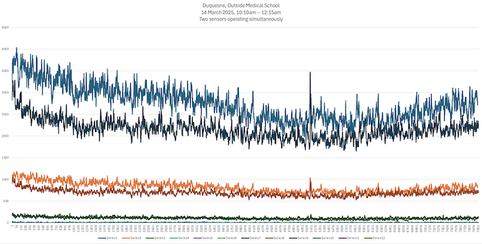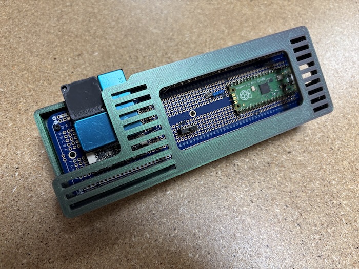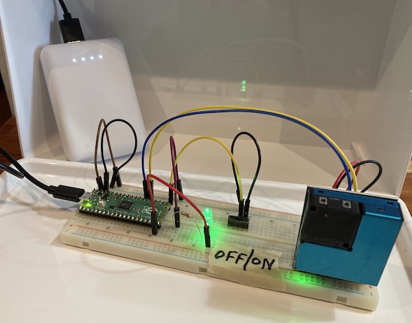 Media Maker's Lab | Air Quality Sensor[ Projects ] [ Workshop Resources ] [ Workshop Photos ] [ theoryofpaul.net homepage ] This project utilized an Adafruit Adafruit PMSA003I Air Quality Breakout, a Raspberry Pi Pico, and a switch and an LED. The Pico was powered by a small external USB battery (the type used to charge phones). ![]() The python script writes ASCII files to the Pico's build-in flash storage every second. They are in a "list" format that makes them really easy to read in Max/MSP using the [text] object. In the future it might be nice to save space by writing in binary, but then some conversion might have to take place in order to read each line sequentially in Max. ![]() I modeled and printed a sturdy enclosure that could be strapped to my backpack. It's fun to ride around the city with my GoPro camera on my helmet, and compare what the air quality is like in different places at different times! Sometimes it's nice just to put the unit outside for a couple of hours and see what's going on... ![]() Content on this page is licenced under GNU General Public License. |